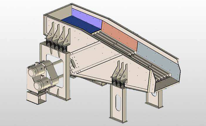 雙質(zhì)體振動給礦機:采用雙質(zhì)體近共振慣性振動原理。上下布置單排或雙排剪切橡膠彈簧,由下壓板通過螺栓連接在平衡體上,再由左右側(cè)板與槽體連接。結(jié)構(gòu)緊湊、衡壓平穩(wěn)啟動、不受槽體物料載重和卡死的影響 給礦粒度(0-850mm),給料量大(8-1800t/h),可以配置無級變頻器,實現(xiàn)變頻給料、配料,遠距離微機操作控制。