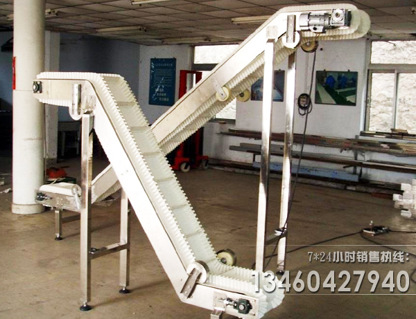 大傾角輸送機也叫大傾角皮帶輸送機,是利用輸送帶上面的裙邊擋邊擋板形式,加上改向滾筒,可做成50-90度的角度。具有輸送量大,占地面積小,維護簡單等特點,廣泛在。相比提升機,具有。