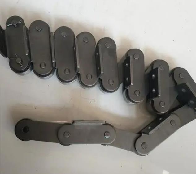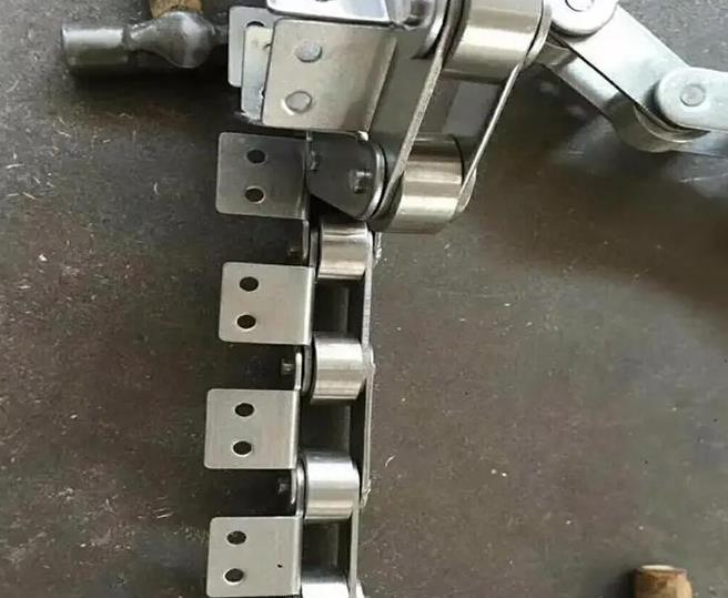 鏈板輸送機(jī)的鏈板與鏈條之間是通過(guò)輸送鏈上特殊形狀的鏈條鏈板連接的輸送用鏈條因?yàn)樾枰迷诟魇礁鳂拥妮斔驮O(shè)備中,為方便輸送設(shè)備與鏈條之間的連接,輸送用鏈條的側(cè)鏈板形狀就不再僅僅限于普通傳動(dòng)用套筒滾子鏈的平直側(cè)鏈板,而是帶上了一系列的附件常見(jiàn)的輸送鏈可以有多級(jí)附件,